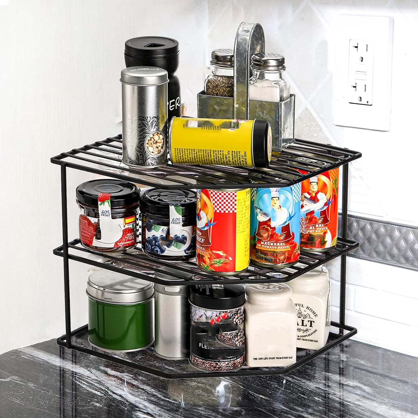 WonderStand KONA | 3-Tier GI Steel Corner Storage Rack: A Versatile Solution to Organize Kitchen Plate and Dishes (Black)