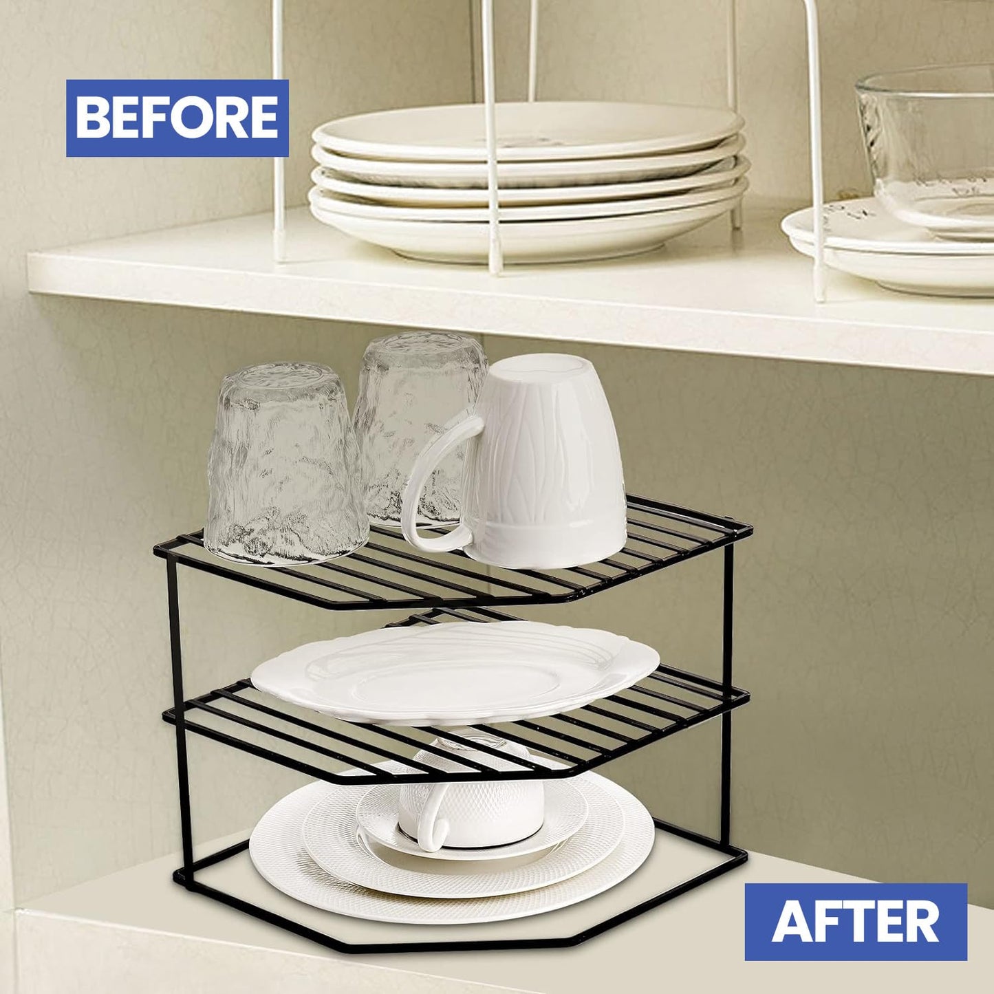 - ORGANIZE WITH EASE: It quickly expands your kitchen cupboard storage by utilizing vertical space, and suitable for plates of all sizes and various kitchen essentials,
